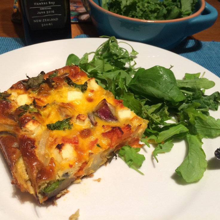 Inspired my friend I decided to make the recipe and share it on my blog.  So dinner tonight was Roasted Vege Frittata with optional lamb steaks for those who really can’t do without meat.